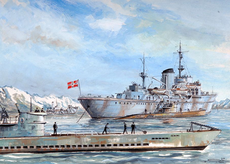 Après la capitulation en 1945, les Anglais découvrent le Herman von Wissman, abandonné et échoué dans un petit port de la côte norvégienne.