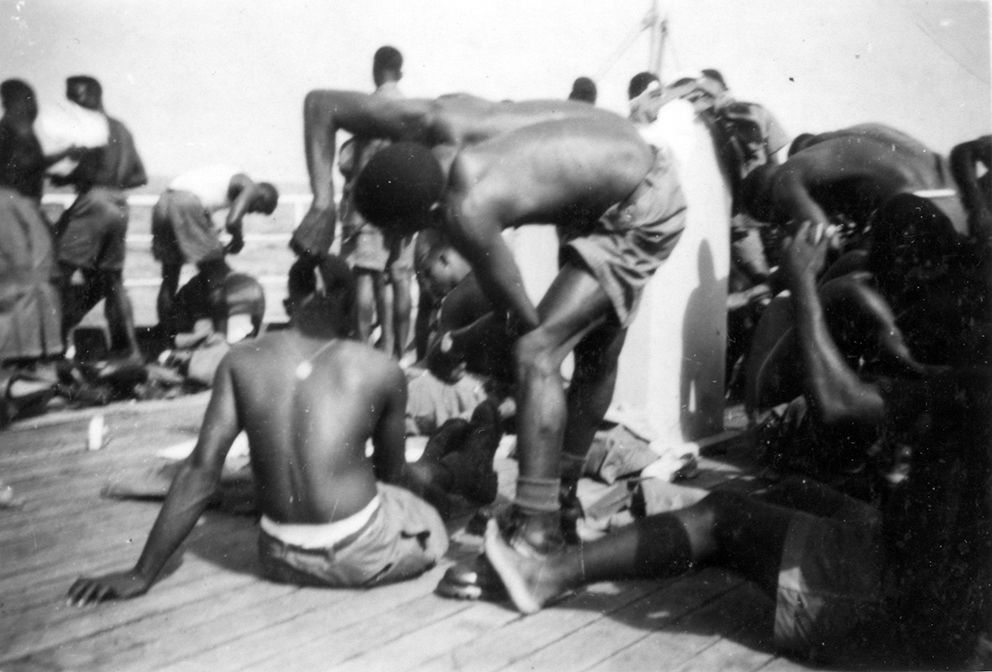13 mai 1958, départ de Zeebrugge pour le transport de matériels et de troupes via Lobito, Matadi Tenerife au retour le 20 juin 1958 à Ostende, le AP 957 KAMINA héberge 326 Officiers, Sous-Officiers et soldats de la Force Publique qui se rendent à l'EXPO 58 de Bruxelles.