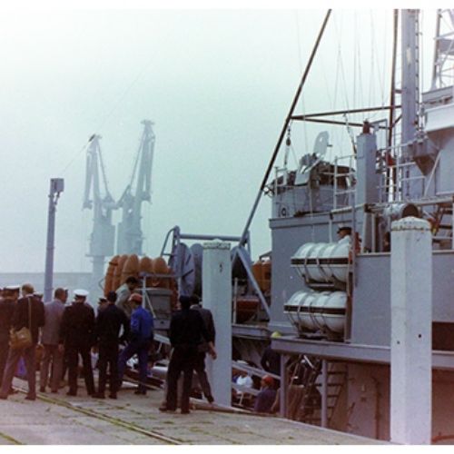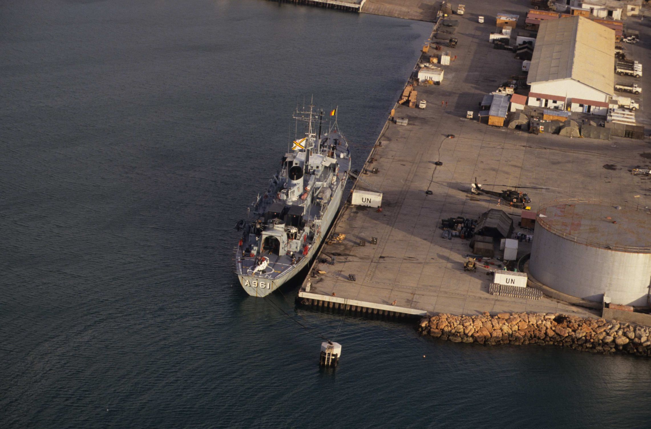 Départ de Zeebrugge du navire de soutien logistique Zinnia à destination de Kismayo, il est placé sous le commandement du Capitaine de corvette A. Vinck.