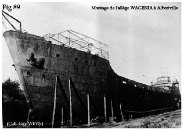 Le cargo, embarqué sur les allèges, voyage un peu plus lentement, mais deux départs sont assuré chaque semaine, en direction du Nord lac au départ d'ALBERTVILLE comme de KIGOMA.Les allèges sont relayée dans les ports principaux. Il s'ensuit que le remorqueur est assuré d'une rotation rapide. Un périple complet lui prend en moyenne 3 jours dont 6O heures de navigation et 12 heures de manoeuvres, répartie sur 3 escales à l'aller comme au retour.En 1955, la capacité de transport de la flotte lacustre sous pavillon belge, est de 360.000 tonnes/an.La mise en service de nouvelles allèges, dont notamment un bateau citerne et un bateau de charge de 1.2000 tonnes chacun, allait porter cette capacité à plus de 500.000 tonnes/an avant 1960. (fig 89)