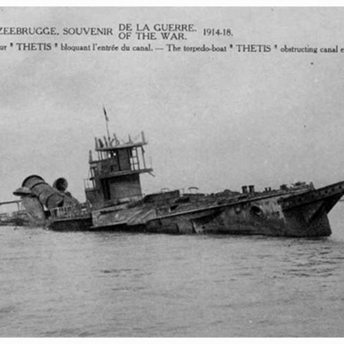 Dans la nuit du 09 au 10 mai 1918, les Britanniques ont utilisé le H.M.S. Vindictive pour tenter de bloquer le port d'Ostende afin d'empêcher les sous-marins allemands basés à Zeebrugge d'accéder au port.