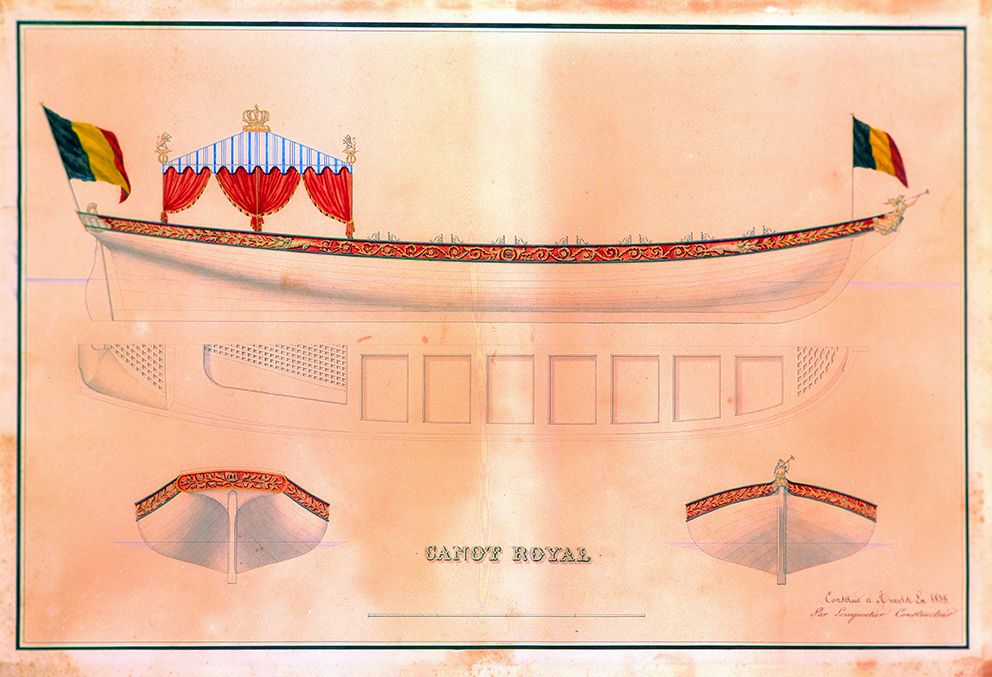 Le canot royal fut construit à Anvers en 1835 au chantier Lecarpentier à 14 rameurs.