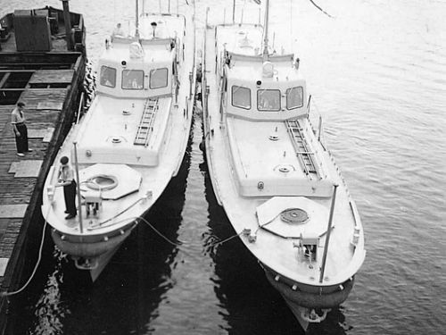 Nous avons eu l'occasion de visiter les vedettes rapides de la flottille, amarrées au quai, avant le début de la cérémonie. L'officier, les quatre matelots et les deux mécaniciens qui en constituent l'équipage, y trouvent tout le confort.