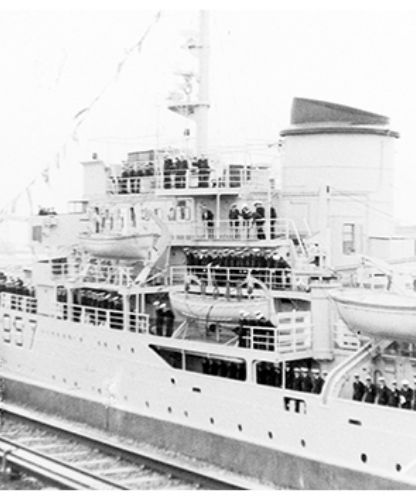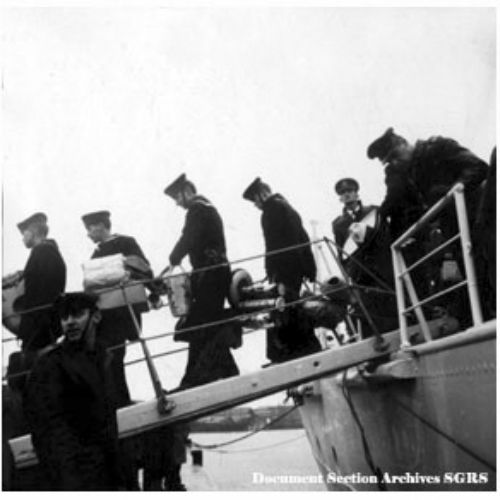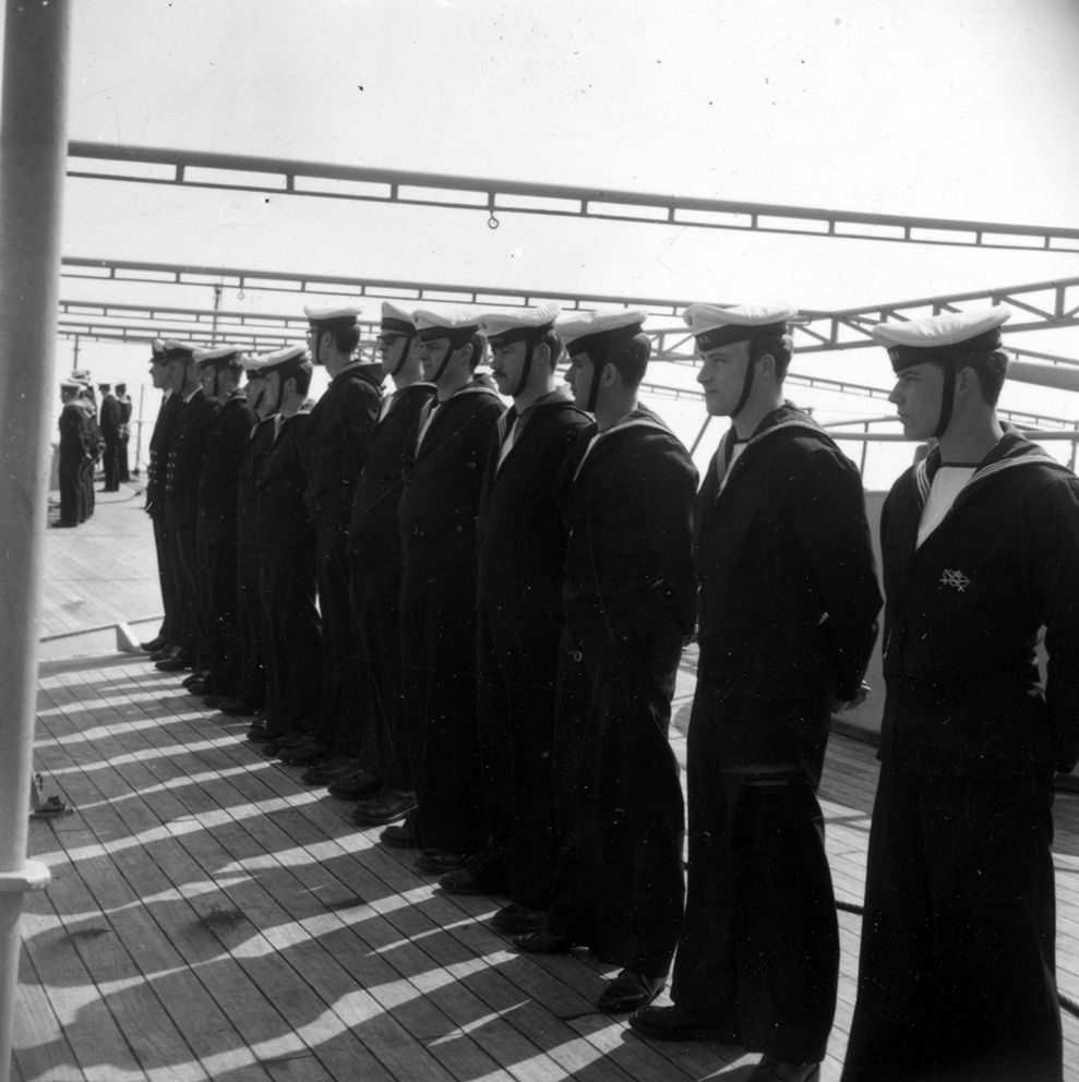 Immersion de 105 tonnes de munitions dans le Golfe de Gascogne. - Belfast, visites, réception, notamment à bord du HMS Caroline (Open Ship).