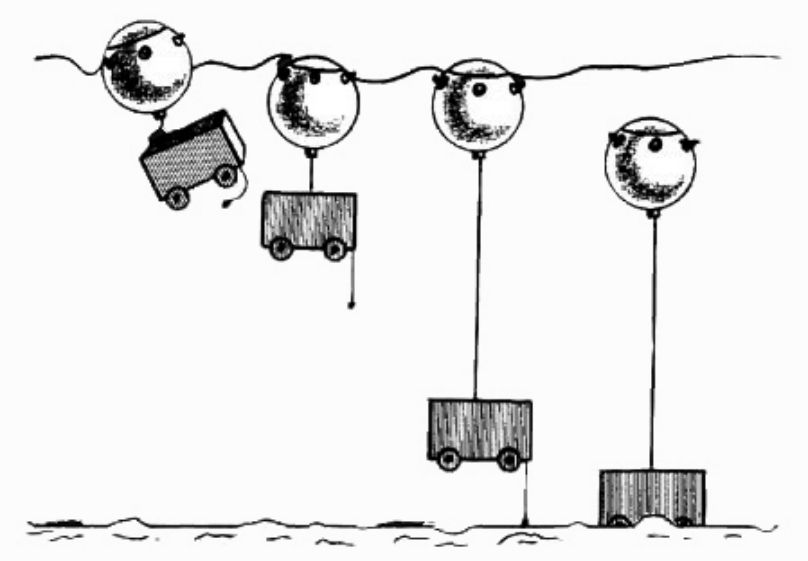 Remarquons que la pression sur le sac commence à diminuer quand le navire commence à passer au-dessus de la mine, c’est-à-dire qu’au moment où le navire aura son centre au plus près de la mine celle-ci sautera.