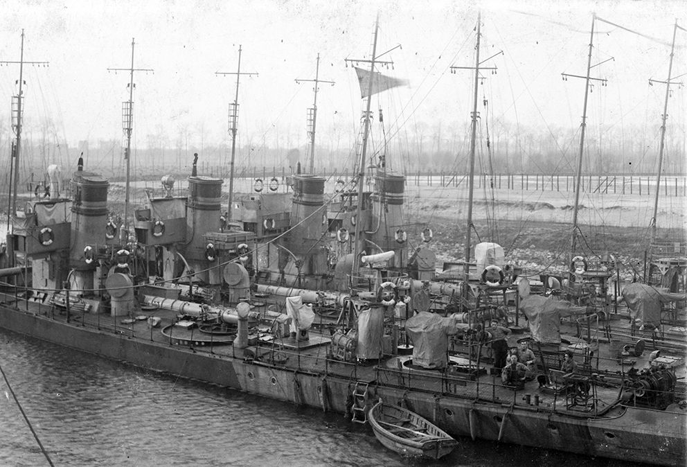 C'est le A23, qui pour la première fois effectua une sortie en haute mer le 12 mars 1924. Il était sous le commandement du lieutenant de Vaisseau français MADELIN. Il fit escale à Ostende et rentra à Bruges le soir. (article La Gazette du 15 mars 1924).