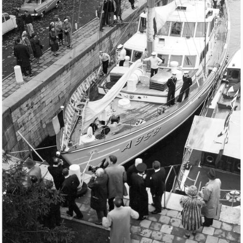 A quitté Ostende, le 22 juin vers midi, afin de participer aux recherches effectuées par le Centre belge de Recherches sous-marines et océanographiques, au large de la presqu’île de la Revellata avec escales à Calvi, Cherbourg, Vigo, Malaga, Alicante, Toulon, Ajaccio, Palma America, Cadix et la Coruna. Son séjour durera environ un mois et demi :
