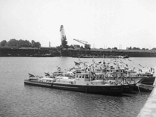 Puis eut lieu le défilé saisissant des six vedettes belges, de quatre bateaux de la British Rhine Flotila, de deux bateaux de l'Escadrille française et de deux bateaux de la Rhine River Patrol,appartenant aux Forces américaines.