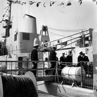 Le ministre a souligné par ailleurs que le "Godetia" est une oeuvre essentiellement belge, née de la colaboration des constructeurs navals de l'Escaut et des constructeurs de moteurs et d'appareils électroniques des bords de Meuse. Avant le Ministre M. Van Damme administrateur-délégué des Chantiers navals de Tamise, avait souligné que la construction de ce navire constituait non seulement un évènement remarquable dans l'histoire de la Force Navale mais marquait aussi une étape dans la lutte contre la crise aigue dans les chantiers navals belges souffrent depuis des années. Au cours de la même séance des membres de l'équipage de l'ancien "HMS Godetia" ont été présentés au ministre.