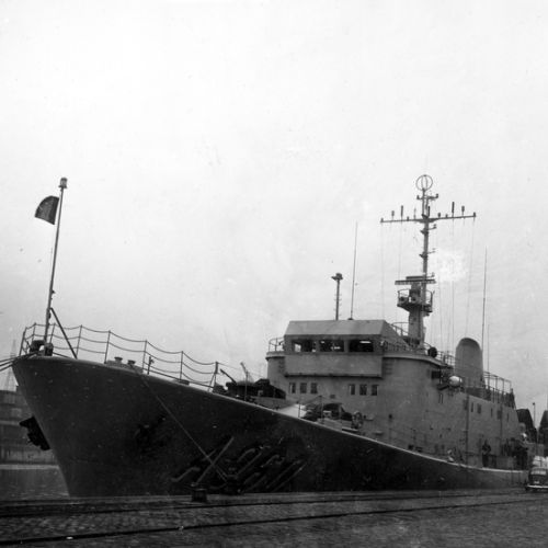 Le 07 décembre 1965 à 16.00 heures, sa marraine, Madame Moyerson, épouse du Ministre de la Défense Nationale de l'époque, en brisant la traditionnelle bouteille de champagne, le libérait de la cale de construction navale belge.