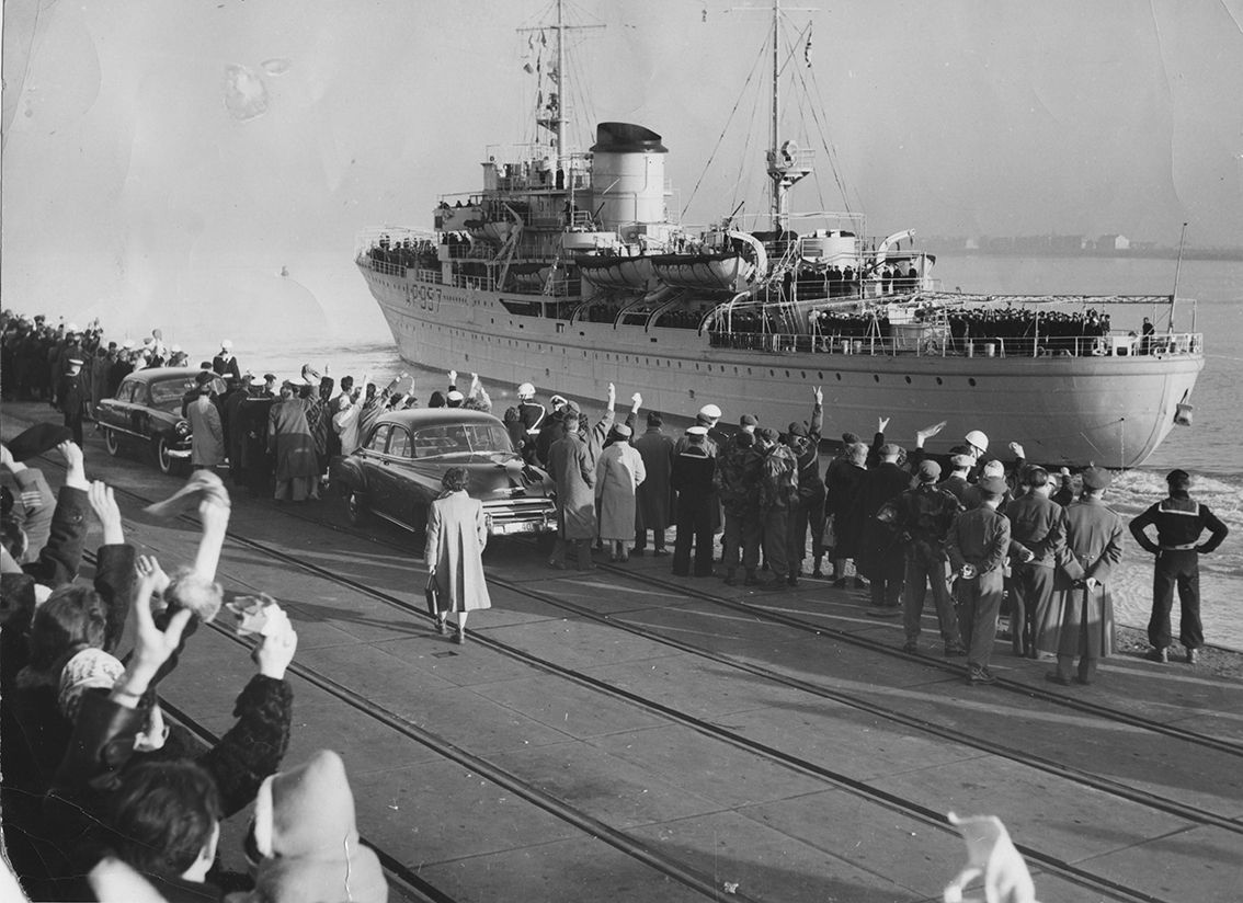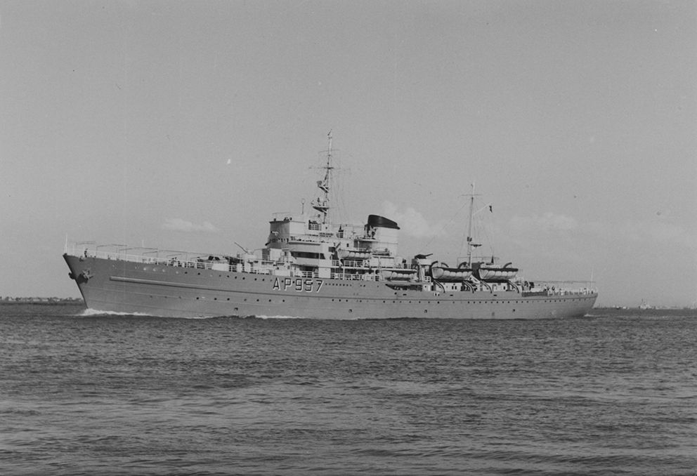 Au retour le 07 octobre 1959 à Anvers le AP 957 KAMINA rapatrie les équipages du De Brouwer,