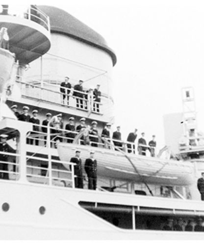 - Le mardi 19 janvier 1965 à 9 heures, départ de Zeebrugge pour une croisière d'écolage pour 170 élèves dont 4 congolais via Las Palmas, Cagliari, Naples, retour par le détroit de Bonifacio, Barcelone.
