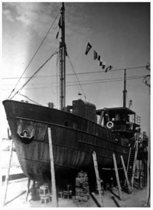 En vue de l'exécution pratique de ce programme, le FOND DU BIEN ETRE a pris à sa charge la construction et l'armement d'un bateau de pêche très moderne (Fig. 23) chalutier à moteur pour le la TANGANYKA - photo Chantier Naval SMIDTS)