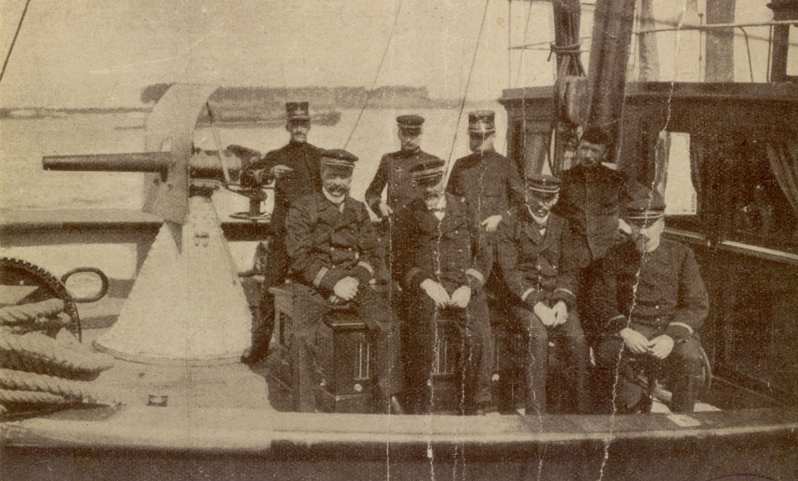 Groupe d'officiers à bord de la canonnière