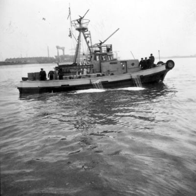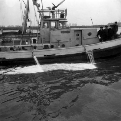Remorqueur portuaire avec lance à incendie.