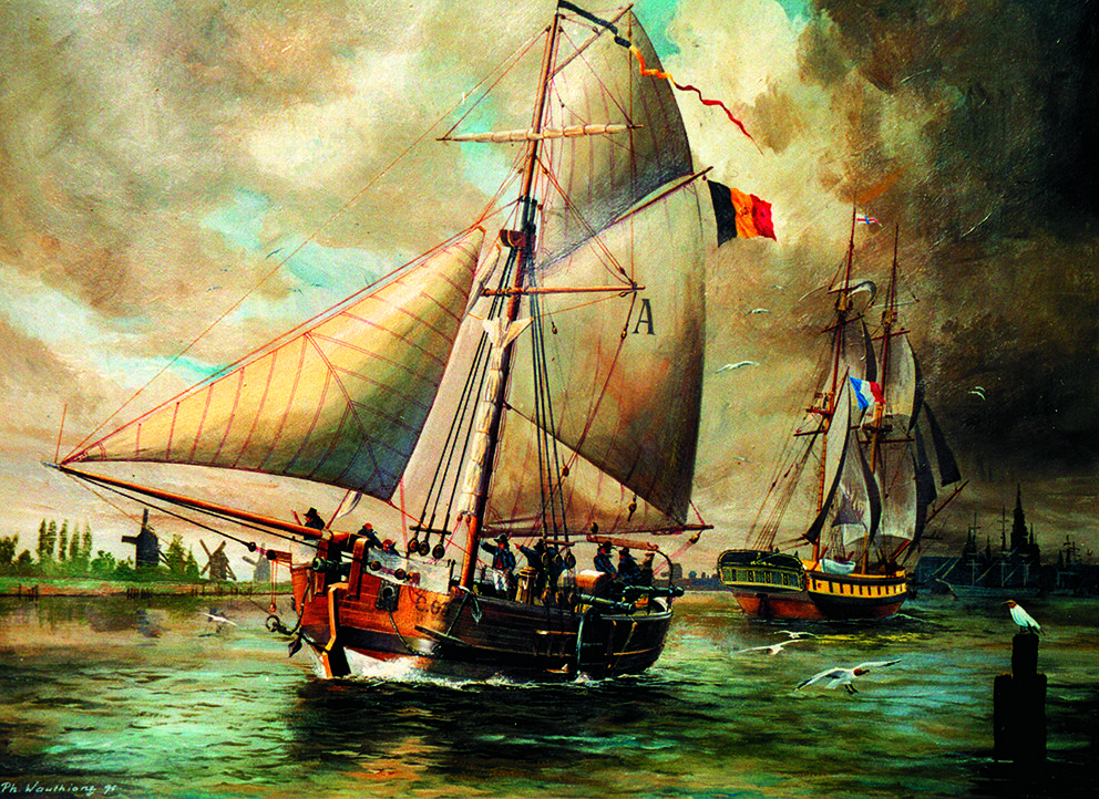 Ce n‟est que le 15 janvier 1831 que notre Congrès vota un crédit pour créer une marine militaire belge. Le 5 février suivant, certains esprits échauffés eurent un instant l‟idée que notre première unité de guerre aurait pu être la canonnière hollandaise n° 2, commandée par le lieutenant Van Speyck. En effet, elle se trouvait sur la rive gauche quand elle chassa sur ses ancres avant de se voir drossée contre la digue du Kattendijk tenue par les Belges, en face du chantier du Kattendijk, en face du fort St. Laurent. Elle était armée par un équipage de 31 hommes mais tant des badauds que les hommes du Corps Franc se rendirent sur les lieux et notre officier monta à bord pour avoir une conversation avec Van Speyck. Mais on ne connaît ni la teneur de leur discussion ni si les intentions des Belges étaient de se saisir de cette canonnière car son lieutenant préféra jeter son cigare dans la soute aux munitions plutôt que de risquer de devoir se rendre aux hommes de De Gorter et à la foule menaçante.