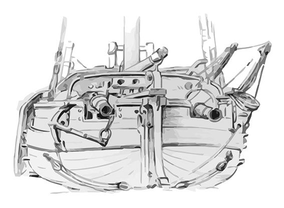 1 canon de 30 livres à l'avant, 2 canons de 8 livres à l'arrière, 2 caronades