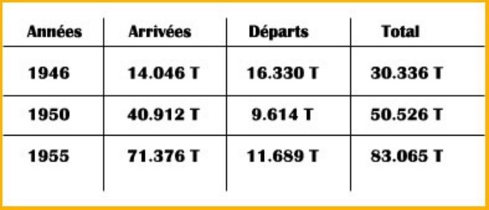 Le nombre réduit des emplacements d'accostage; l'étroitesse des avants-quais; l'exiguïté des entrepôts; constituaient de sérieuses entraves au rendement d'un matériel navigant, dont la capacité de charge a crû en fonction de l'augmentation du volume des transports.