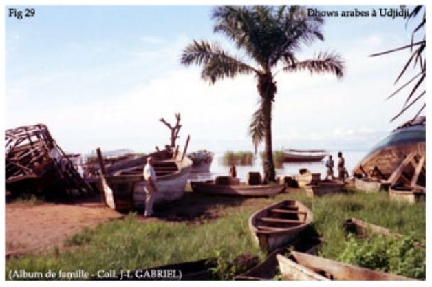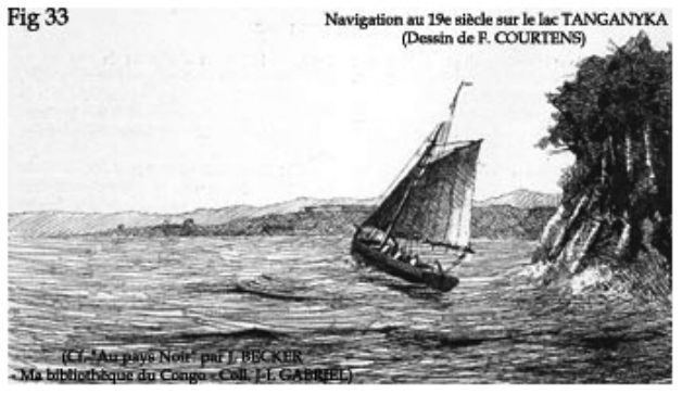 Les observations des premiers explorateurs nous ont appris que bien avant leur venue, les eaux du lac étaient sillonnées par de nombreux "dhows" arabes (Fig.28), dans lesquels ont entassait hélas, les pitoyables esclaves enchaînés au milieu de ballots de marchandises et de pointes d'ivoire.