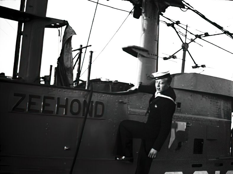 Le baliseur "ZEEHOND", partit parmi les derniers de France pour l'Angleterre en 1940, il avait fait toute la guerre au service de la "Liverpool and Glasgow", une importante société de remorquage et de sauvetage.